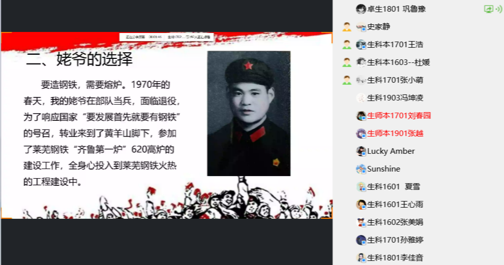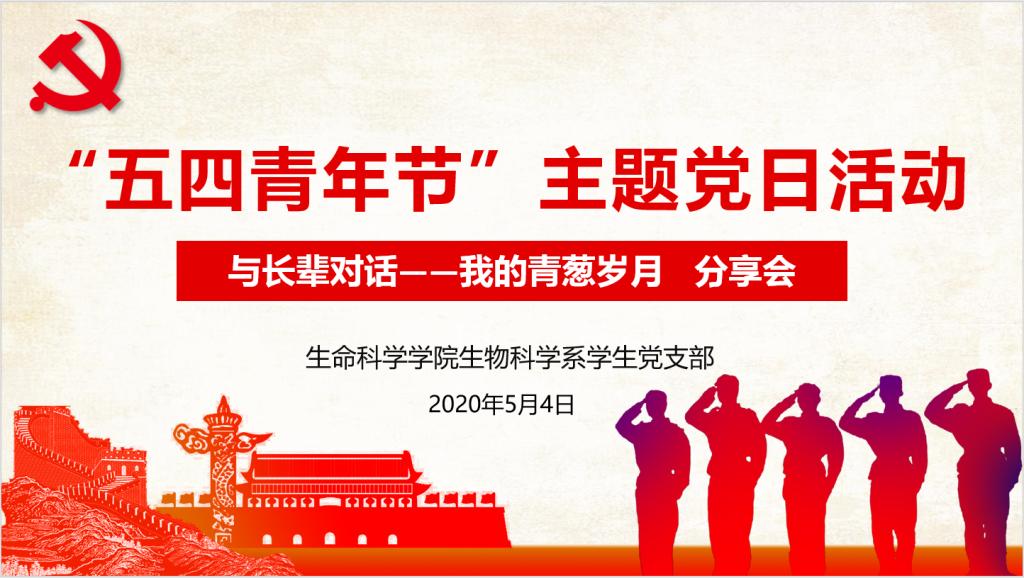 五四风雷,激荡百年;五四精神,薪火相传。5月4日上午,英国上市365生物科学系学生党支部举办了“与父辈对话之我的青葱岁月”线上主题党日活动。本次活动由党支部书记史家静主持,生物科学系学生党支部全体党员和入党积极分子参加。