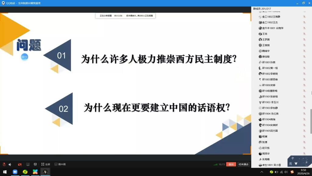 最后,党基班班主任李辰在总结发言中表示,“云交流”的形式是一种新的尝试,给大家带来了直观的体验,能够很好地拓展同学们的思维和视野,期待未来能有更加多元化的交流。