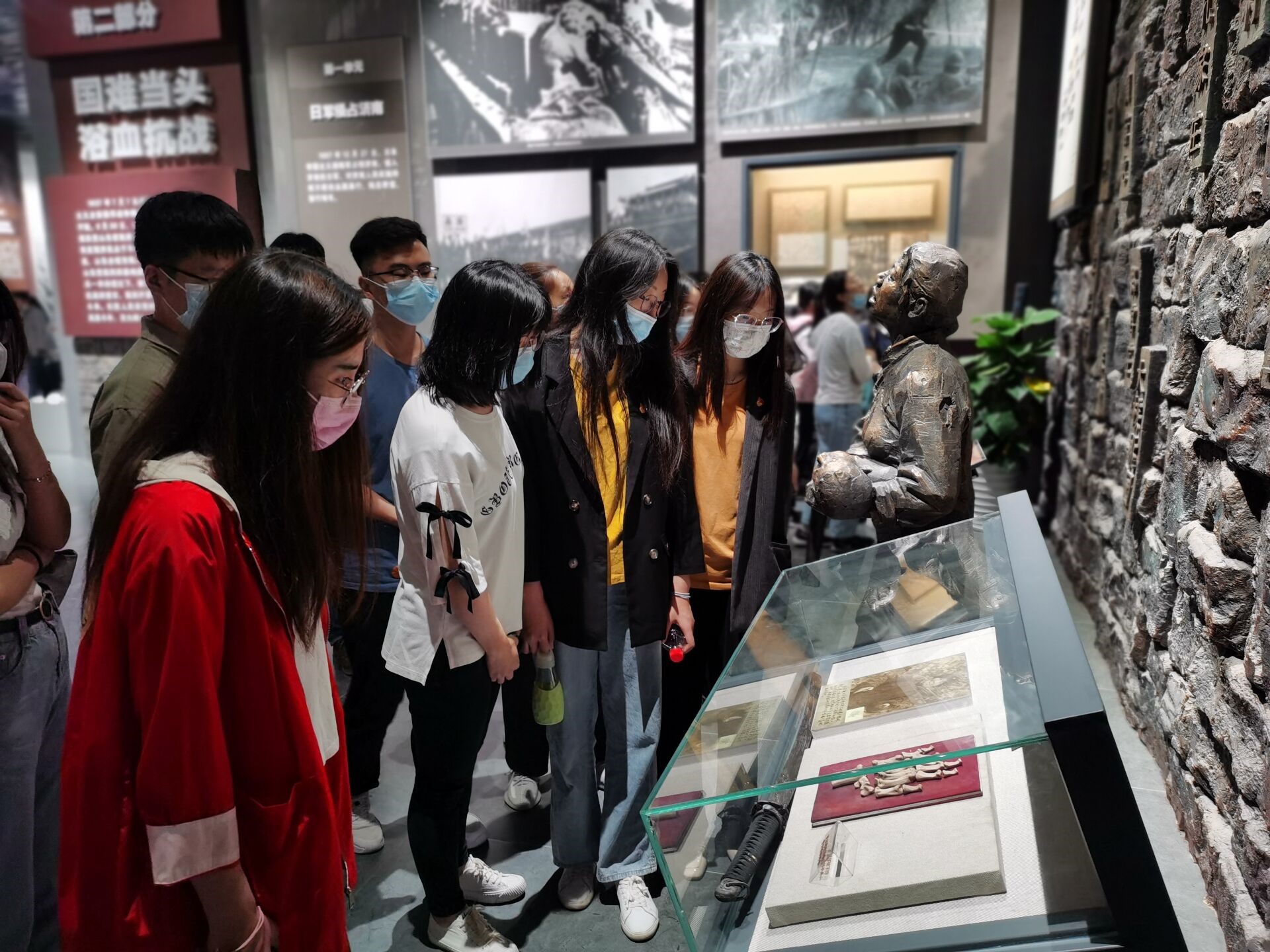 大峰山被称为山东泰西地区的“小延安”,是泰西地区(泰安、肥城、平阴、长清等区域)中国共产党领导人民抗击日本侵略者的中心,并以此为中心建立了有着广泛群众基础的革命根据地。作为党性和爱国主义教育基地,大峰山革命根据地纪念馆以声光电、雕塑、实物、图片、文字等方式全方位介绍了当年革命根据地的盛况,全体师生党员伴随VR解说进行了纪念馆的学习,强烈的视觉、听觉感受让前来瞻仰学习的各学生党员崇敬之情油然而生。