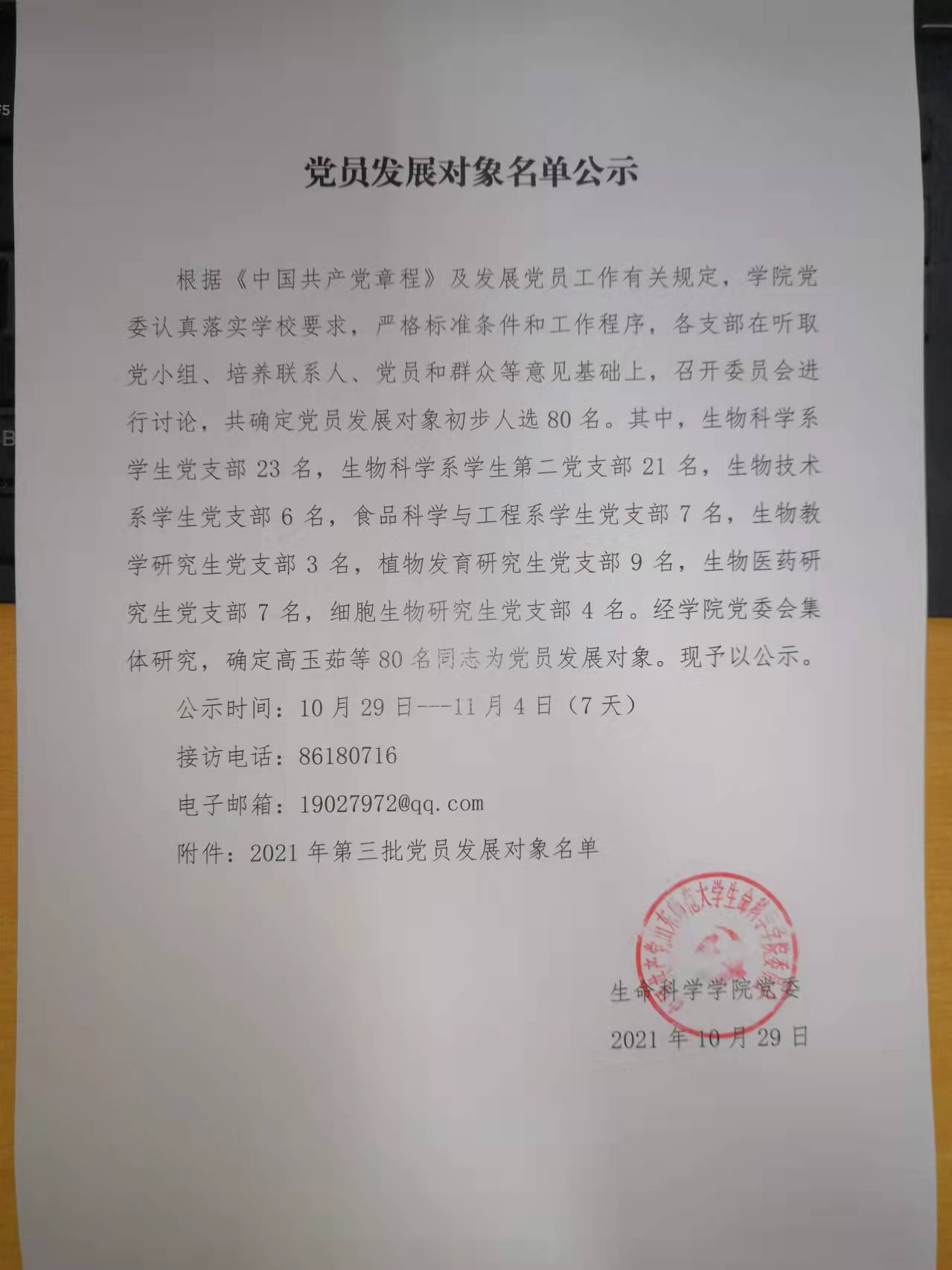 2021年第三批党员发展对象公示