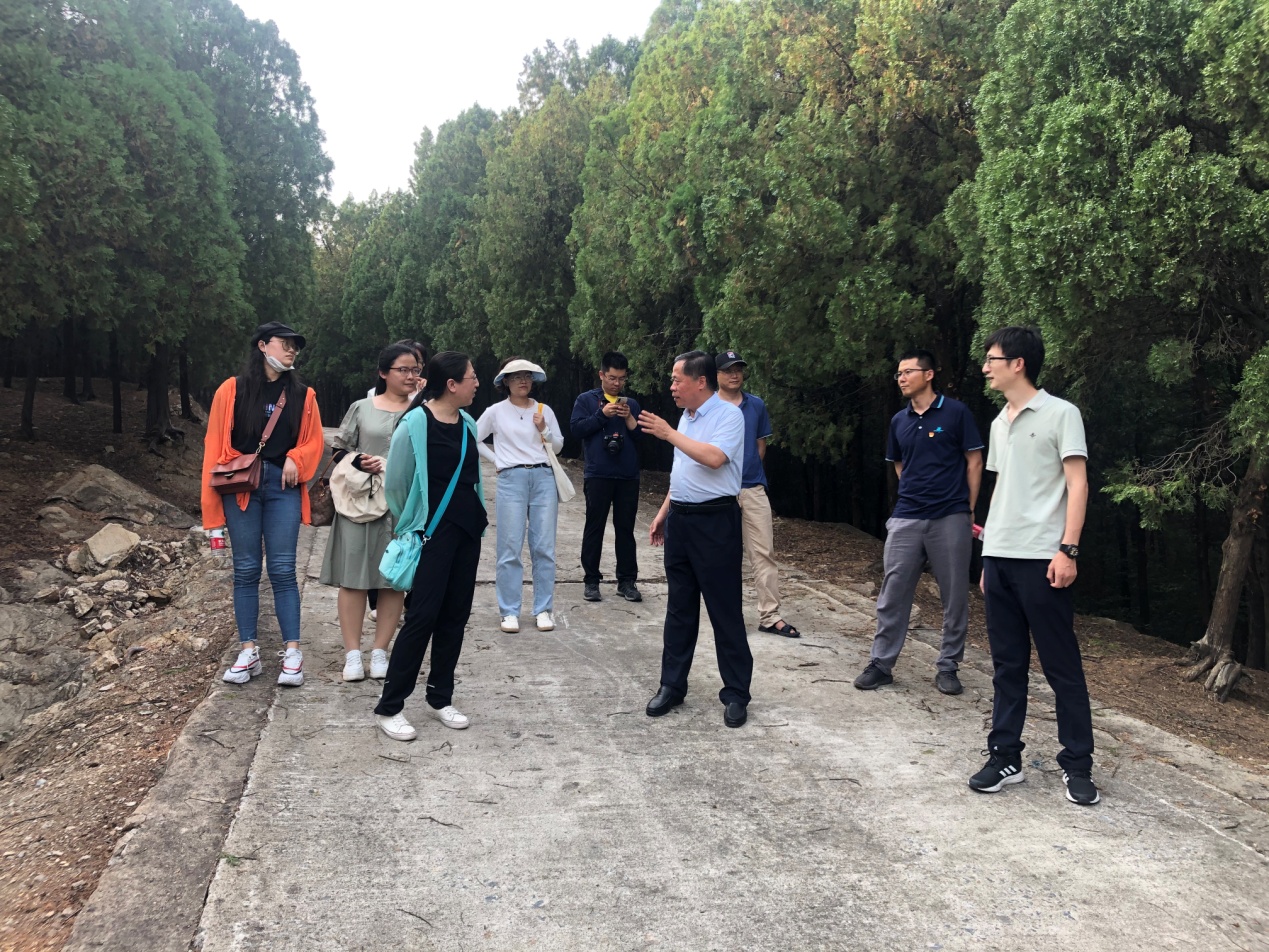 之后,一行人参观了林场。在参观过程中,樊守金为大家上了一堂生动的植物资源学课,详细讲解了林场的植被种类、地质特点、生态作用等,使本次活动成为趣味盎然的专业学习之旅。樊守金介绍,林场中有两株千年银杏以及古黄连木等珍惜植物资源,植被覆盖率高,种类丰富,在维持本地生态平衡中发挥了重要作用。