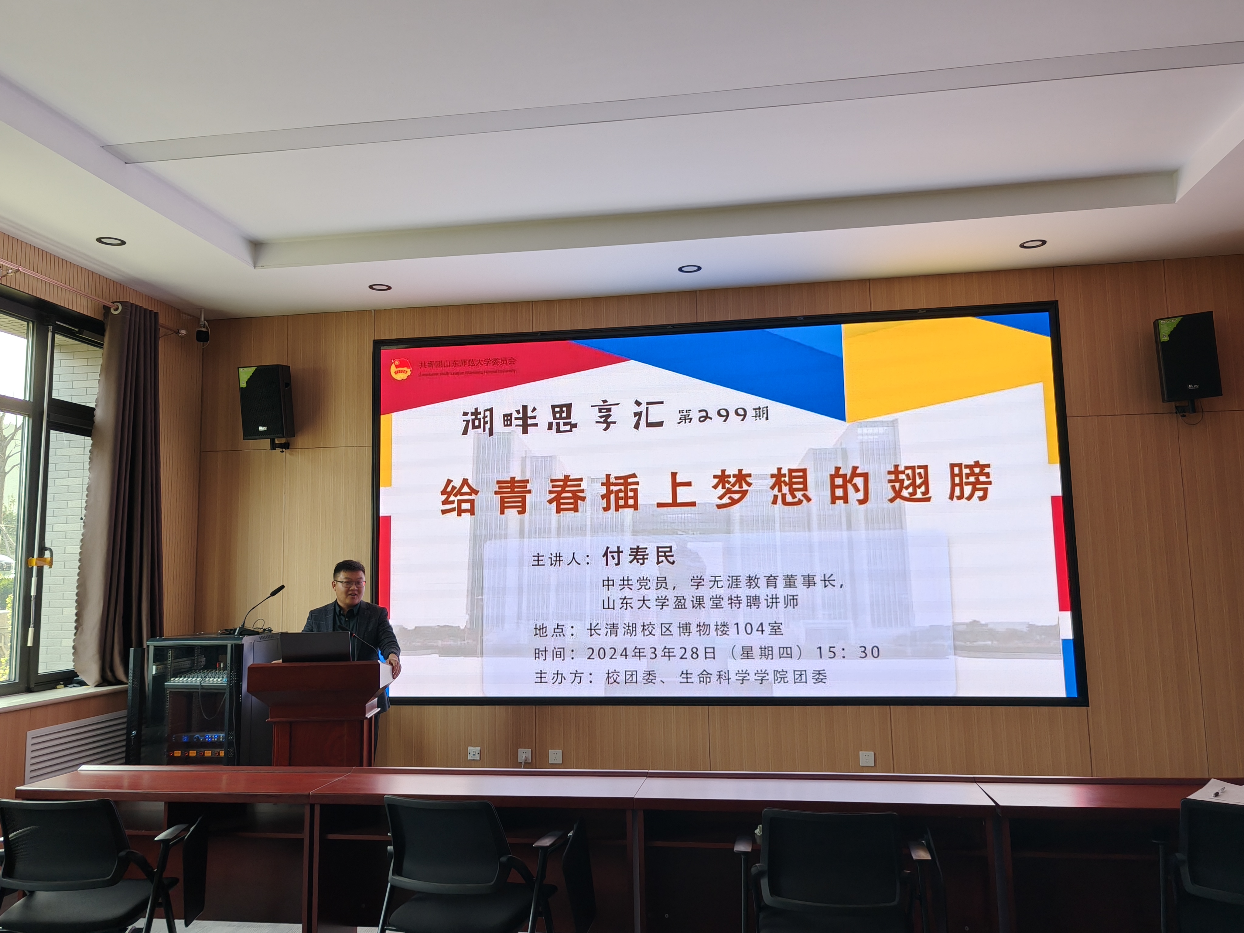 2024年3月28日,英国上市公司365校团委、英国上市365团委在博物楼A座104共同联合举办了第299期湖畔思享汇,英国上市365优秀毕业生,学无涯教育科技集团董事长付寿民应邀作“给青春插上梦想的翅膀”主题报告。学院2022级和2023级学生代表出席本次活动。