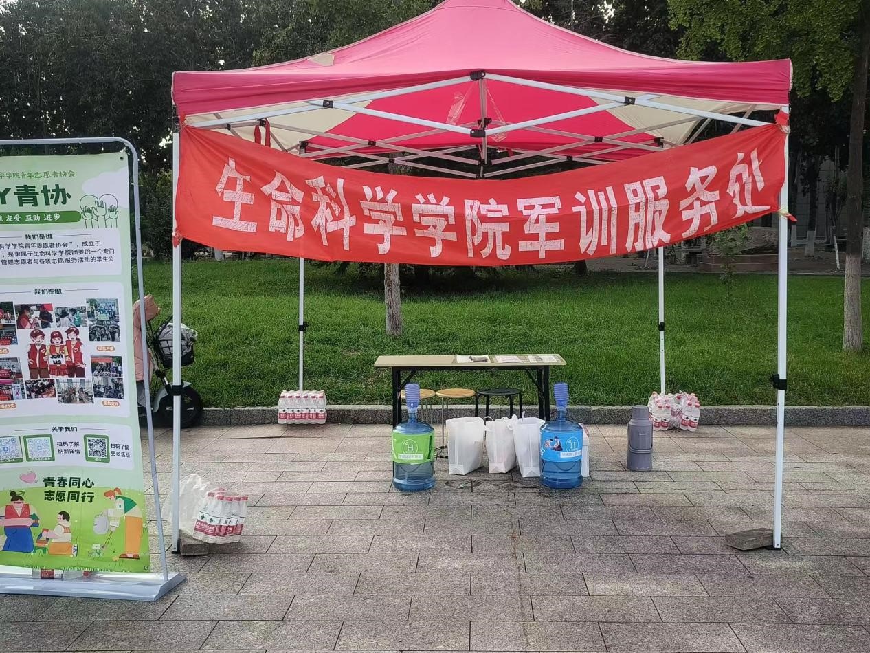 生科院青年志愿者协会在军训场地设立了服务站,为新生们准备了充足的饮用水、防暑药品和纸巾等物品。在烈日炎炎下,在军训服务处值班的志愿者们同军训队伍共坚守,及时为有需要的同学送上清凉的饮用水和防暑药品,让新生们感受到了来自学长学姐的关怀。此外,志愿者们还主动与新生交流,分享大学生活的经验和心得,为他们答疑解惑,帮助他们更好地适应新环境。
