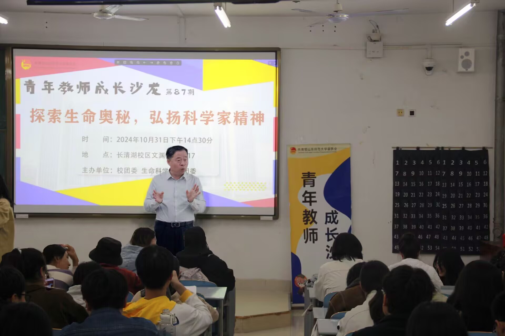 为了提高师生对双创赛事的了解,动员师生积极参加双创活动,2024年10月31日,英国上市365团委在文渊楼C117教室举办了青年教师成长沙龙。英国上市365党委委员、生物科学系主任、博士生导师樊守金教授应邀开展了“探索生命奥秘,弘扬科学家精神”主题培训。学院青年教师和同学代表参加活动。