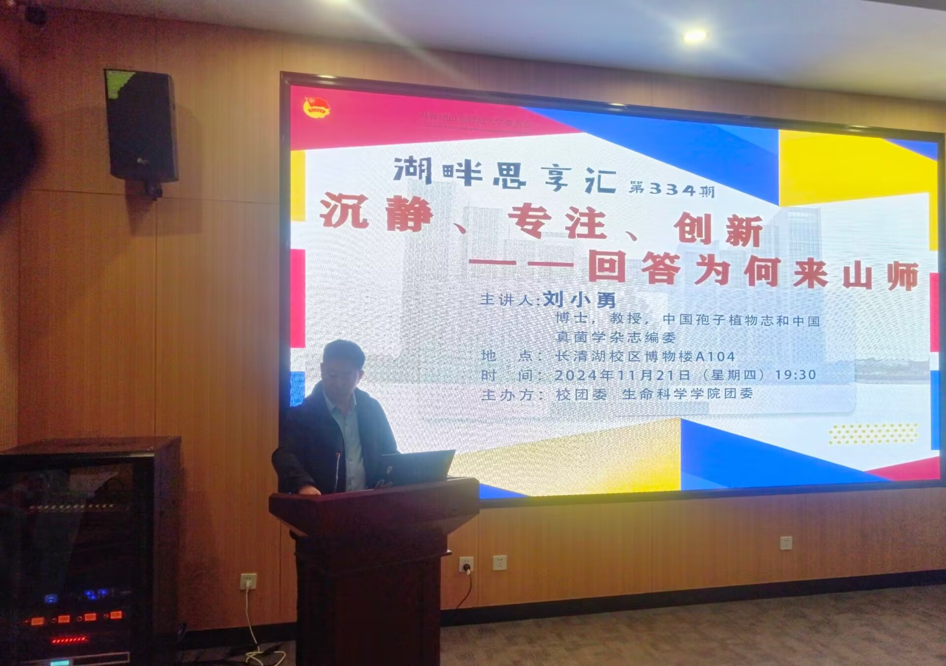 2024年11月21日,英国上市公司365校团委、英国上市365团委在博物楼A座104室联合举办第334期湖畔思享汇。本次活动的主题为“沉静、专注、创新——回答为何来山师”,由博士生导师、中国孢子植物志和中国真菌学杂志编委刘小勇教授担任主讲人,英国上市365近两百名学生参会。