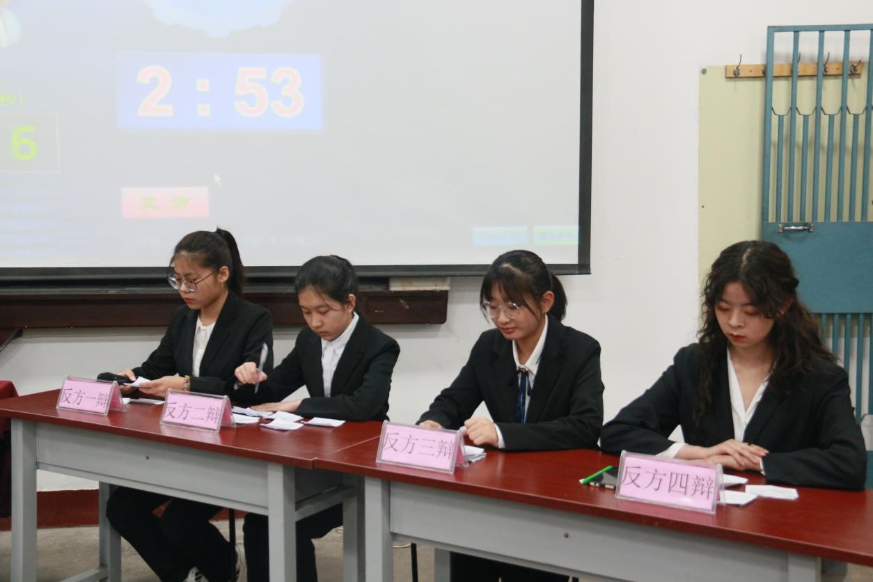 双方以“门当户对是否为过时的婚姻观”为辩题,展开激烈辩论。开篇立论,双方一辩分别阐明己方观点,条理清晰、妙语连珠的论述让大家耳目一新。攻辩环节中,针对反方二辩提出的“我国离婚夫妻的双方家庭不和谐多为门不当户不对造成”这一论点,正方列举了当代年轻人对于“门当户对”想法的数据调查,表明门当户对在当代社会中处于婚姻选择中的最后一位,以此进行反驳。自由辩论环节,双方各抒己见、分秒必争,就“原生家庭带来的三观与生活条件”展开,对夫妻之间的生活矛盾源头进行探讨,将比赛推向高潮。赛后,李炜轩为大家讲述了辩论赛的意义,“想说、敢说、站出来说”,就是队员们最简单、最热烈的初心和追求。
