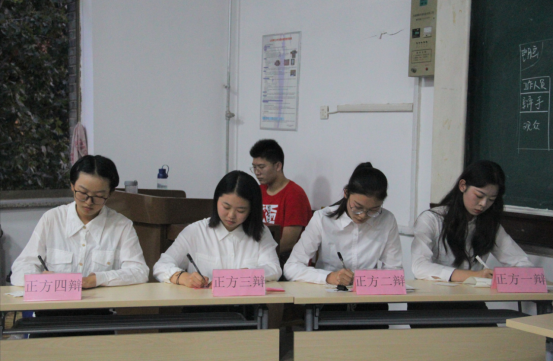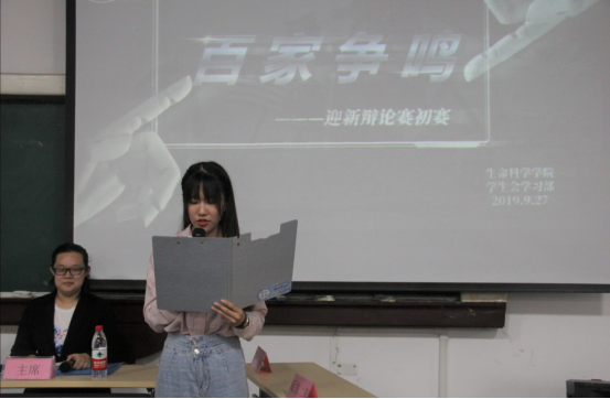 晚六点,辩论赛在热烈的掌声中正式开始。主持人汪非霞对主席、评委和观众的到来表示欢迎,并介绍了本次辩论赛的赛制和规则。随后,第一场辩论在正方19级生科一班辩论队和反方19级生科四班辩论队之间展开。正方列举狼王领导狼群等事例,妙语连珠,结合“物竞天择,适者生存”来佐证“青少年应该注重磨平棱角”的观点。反方逻辑缜密、据理力争,稳守“青少年应该注重保持个性”的看法。双方一次次将比赛推向高潮,赢得现场观众的阵阵掌声。第二场辩论就“大学生应该多看闲书还是多看专业书籍”展开讨论。正方19级生科五班辩论队详言多看闲书之益处,反方19级生科三班代表队尽述专业书籍之优势。双方你来我往,各执其理,难解难分,现场气氛很快被激烈的自由辩和连连的掌声点燃。第三场辩论,正方19级生科六班代表队和反方19级食工一班代表队则围绕“父母在,是否应远游”展开。是否应当远游?双方一辩开篇立论条理清晰,二三辩强势攻辩争执不休,双方据理力争,字字珠玑,场面精彩十足。每场辩论结束后,专业评委都进行了细致的点评,从仪容仪表、语言逻辑、表达技巧、手卡使用等方面对各位辩手提出了实用的建议。比赛结果将在初赛全部结束之后揭晓。