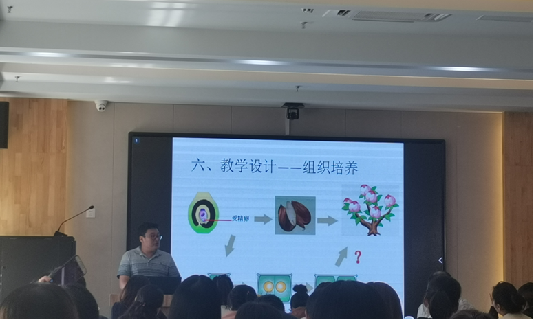 参与交流的九位老师依次上台进行说课展示。来自莱芜高新区实验中学的张玲玲等三位老师对《绿色植物通过光合作用制造有机物》一节进行了说课,老师们分别从教材分析、学情分析、教学目标、教学策略、教学过程、板书设计、教学反思等方面,阐释了各具特色的教学设计,并做了相应的课件展示。说课教师教态落落大方,语言表达轻松流畅。随后,来自济南十五中的吴英英等六位老师对《植物的无性生殖》一节进行了说课展示。独特的教学环节,巧妙的板书设计,配合丰富多彩的图画和视频,让说课环节异彩纷呈,为我们的教学提供了新思路和新方法,也呈现出一些值得继续深入思考和探索的问题。