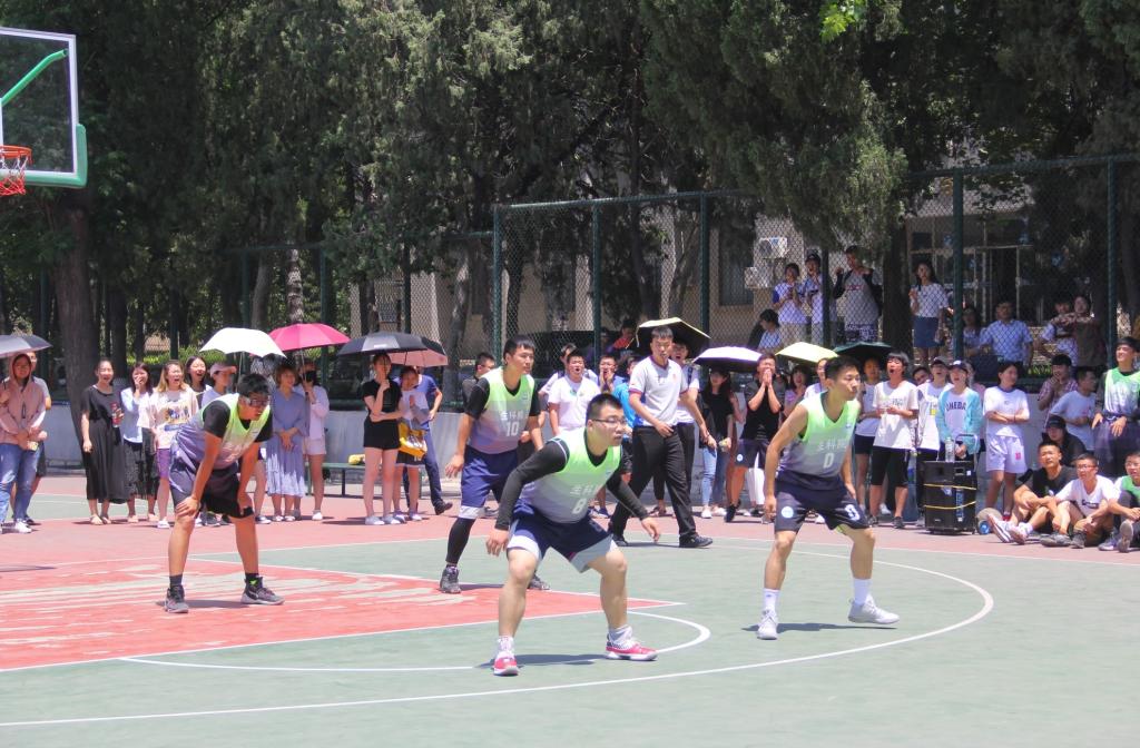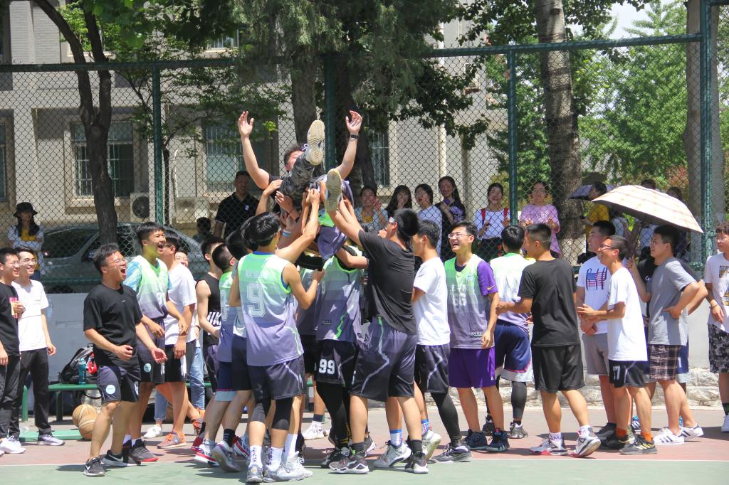易边再战,蓝队紧追猛打,白队防守不慎,失一球,5号唐伟书追回一球,蓝队罚球造杀伤,比分相平来到13:13。经过一段僵持,白队8号王忠堂率先罚球成功得一分,并率队乘胜追击,稳扎稳打,配合默契,瞬间拉开4分差距。进入第四小节,白队生科院旗开得胜,朱孟森一个华丽的转身跳投得分,引得场下齐声欢呼。蓝队化学院不甘落后,罚球暂时止血,却被白队再次攻破底线,生科院领先7分。此后双发展开拉锯战,比分来到23:18。时间所剩无几,白队调整战略,严防死守拖延时间,5号、8号和10号配合默契,假动作层出不穷,蓝队数次组织强攻,无奈皆以失败告终,最后时刻,白队3号、8号和10号一套流利的配合,再进一球彻底杀死比赛,最终比分25:18。生科院斩获冠军。赛后,激动的球员相拥庆贺,欢呼声中,指挥全场的教练被感动的球员抛起。之后全员合影,生科院男篮队员们手捧奖杯,手举队服,似火骄阳下留下青春昂扬的面孔。