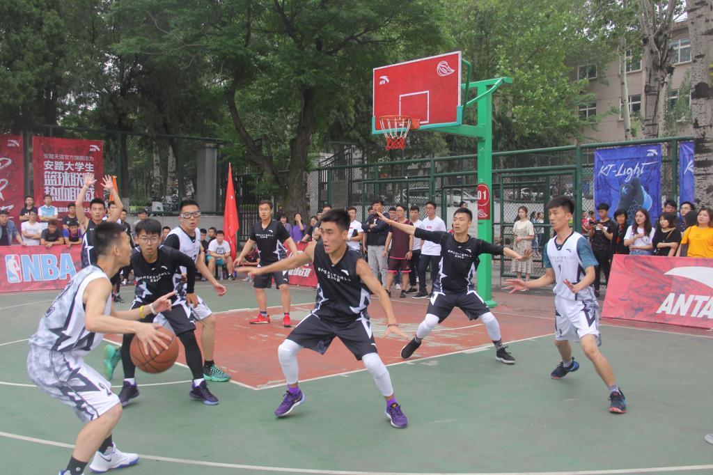 5月17日中午,英国上市公司365“安踏杯”男子篮球联赛在千佛山校区拉开帷幕,英国上市365队迎战音乐学院队。两学院同学积极到场为各自球队加油助威。