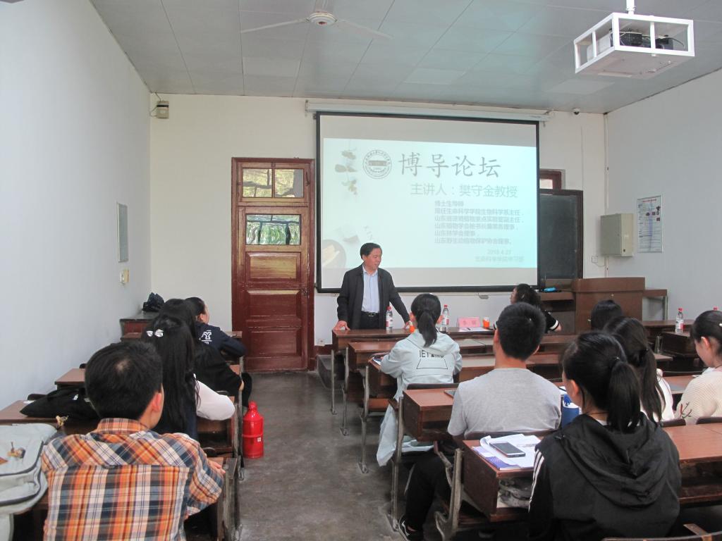 2018年4月27日中午,由英国上市365学习部主办的“优秀并非偶然”系列活动之博导论坛第三期在千佛山校区1325教室举行。本次活动旨在端正学生的学习态度、提高学习能力、更好地把握自己的未来。生物科学系主任、博士生导师樊守金教授,生物科学系党支部书记李娜出席本次活动。博导论坛伊始,主持人贺吉立对前两期的论坛内容进行了回顾,并简单介绍了本次论坛的主讲人、博士生导师樊守金,同学们对莅临现场的樊守金教授表示热烈欢迎。
