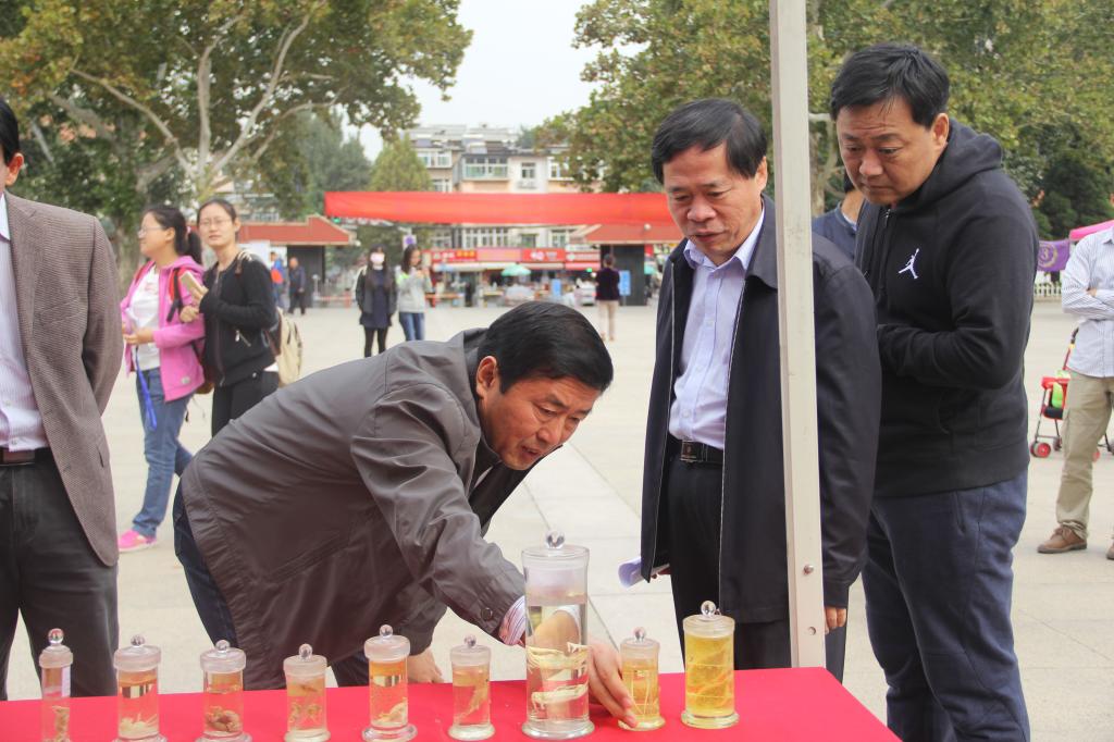 为了办好此次展览,学院领导老师高度重视,前期做了大量筹备和动员工作。在今年7月1日至11日2015级本科生青岛海滨及崂山北九水野外实习期间专业老师们就对标本采集、分类、保存、制作做了详细辅导,2015级各班同学利用暑假时间对标本进行了整理和制作。活动开始前夕,学院组织各班精心挑选出500余份有代表性的标本进行后期制作并仔细核对相关资料,以供展览使用。活动当天,学院领导亲临现场参观指导;公共展区邀请动物学、植物学任课老师坐镇,解疑答惑,进行专业交流和互动;各班八仙过海各显神通,精心布置本班展台和展区,讲解员声情并茂、耐心细致地向观众讲解动物学、植物学知识,介绍压膜标本、腊叶标本、浸制标本的制作过程以及注意事项等。为激发专业学习兴趣,增进对专业学习的了解,学院还组织了2016级新生到场观摩。同学们或拿手机录音,或边听边记,不时与师兄师姐沟通交流,现场气氛融洽。为再现充实有趣的实习场景,学院还播放了邀请专业摄像团队精心制作的野外实习宣传片。此次展示还设置了评审环节,由学院组织专家团队对各班展示情况进行评比,期间评委老师们对各班实习成果给予了高度评价,并对少数班级存在的整姿不到位、标本损坏等问题提出了解决意见,同学们受益匪浅。下午4时,山师附小的百余名小学生放学后来到广场参观,各班组织讲解员为小朋友们从科普的角度简要介绍了参展标本和相关动植物学知识,让孩子们开阔眼界,增加学习科学文化知识的兴趣。