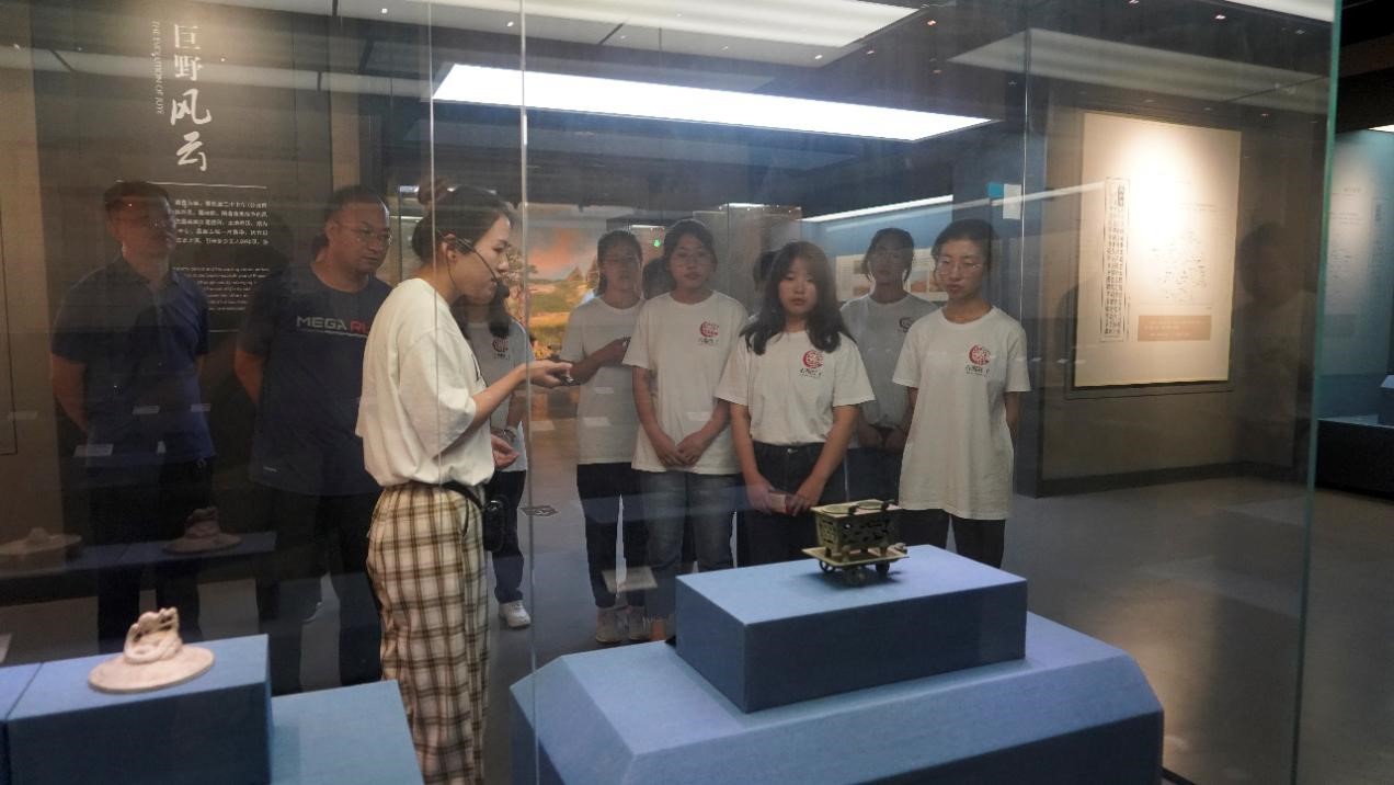 最后大家一起来到巨野博物馆,在讲解员的带领下,深入学习了巨野县深厚悠久的历史文化。大野沧桑展馆陈列着从原始堌堆文化到近代革命时期的文物,展示着巨野的文明发展和悠久的历史底蕴,特别是近代史展览以革命烽火作为开篇,讲述了巨野在中国民族解放战争中做出的贡献;大国之风展馆陈列了昌邑故国文化、汉墓等一级馆藏文物,使同学们彷佛置身于那些逝去的文明之中。俊杰星驰展厅则罗列着巨野古今名人,用他们的故事激励着后人努力奋进,为巨野和祖国的繁荣发展做出自己的贡献。