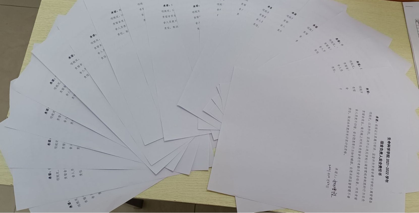 这次2021级学生宿舍“双承诺书”签订仪式,旨在进一步着力构建好学校、院系、班级、宿舍”四级联动体系,引导学生树立宿舍安全、自律、文明意识,进一步强化宿舍负责人的责任意识,努力营造安全、文明、和谐的宿舍氛围。