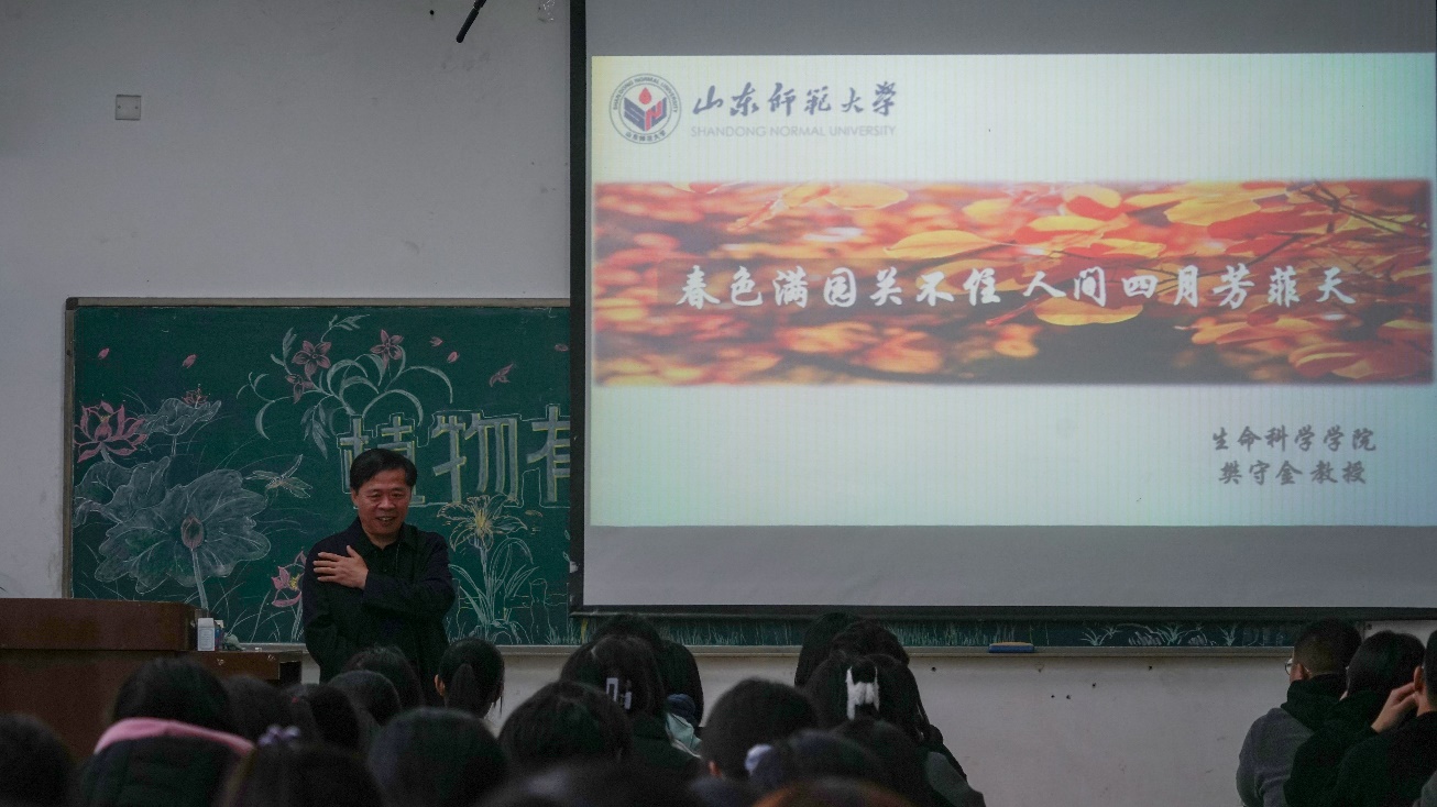 11月13日,我院于长清湖校区文渊楼C区230教室举办“北辰启航”系列活动(二)之“植物有‘道’ 寻芳校园”活动暨植物学兴趣小组启动仪式。活动邀请到英国上市365生物科学系主任、山东省逆境植物重点实验室副主任、博士生导师樊守金教授及8名植物学研究生为同学们现场讲解植物学知识,部分2021级同学到场聆听。