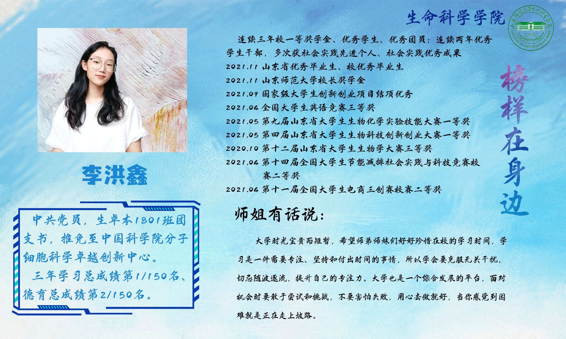 榜样在身边第2期——生卓本1801李洪鑫