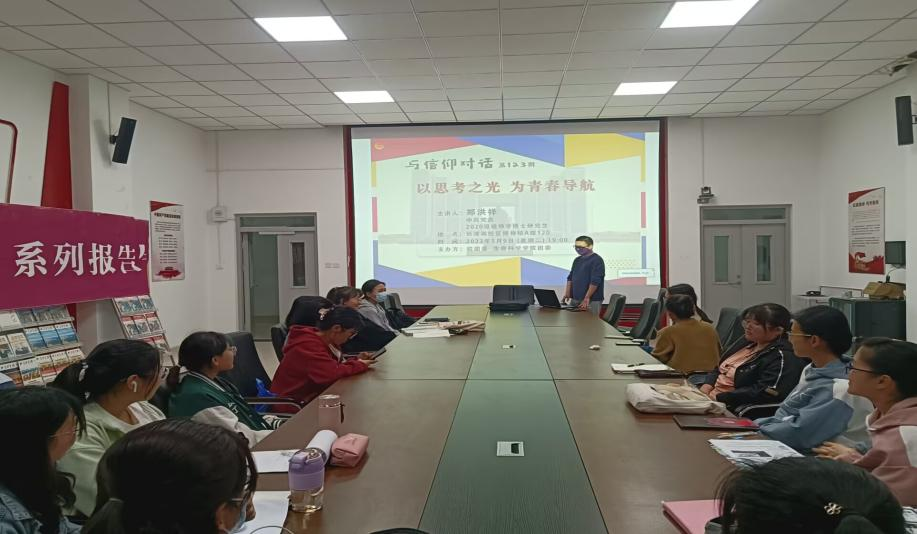 2023年5月9日晚上,在英国上市公司365长清湖校区博物楼A座120会议室,校团委与英国上市365团委共同举办的主题为“以思考之光 为青春导航”的“与信仰对话”讲座顺利举办。本次活动由中共党员、2020级植物学博士研究生郑洪祥担任主讲人。