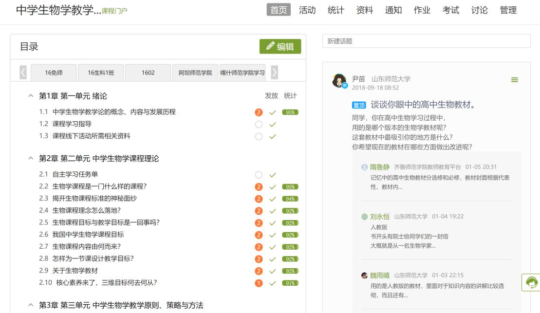 图8 《中学生物学教学论》课程门户管理界面