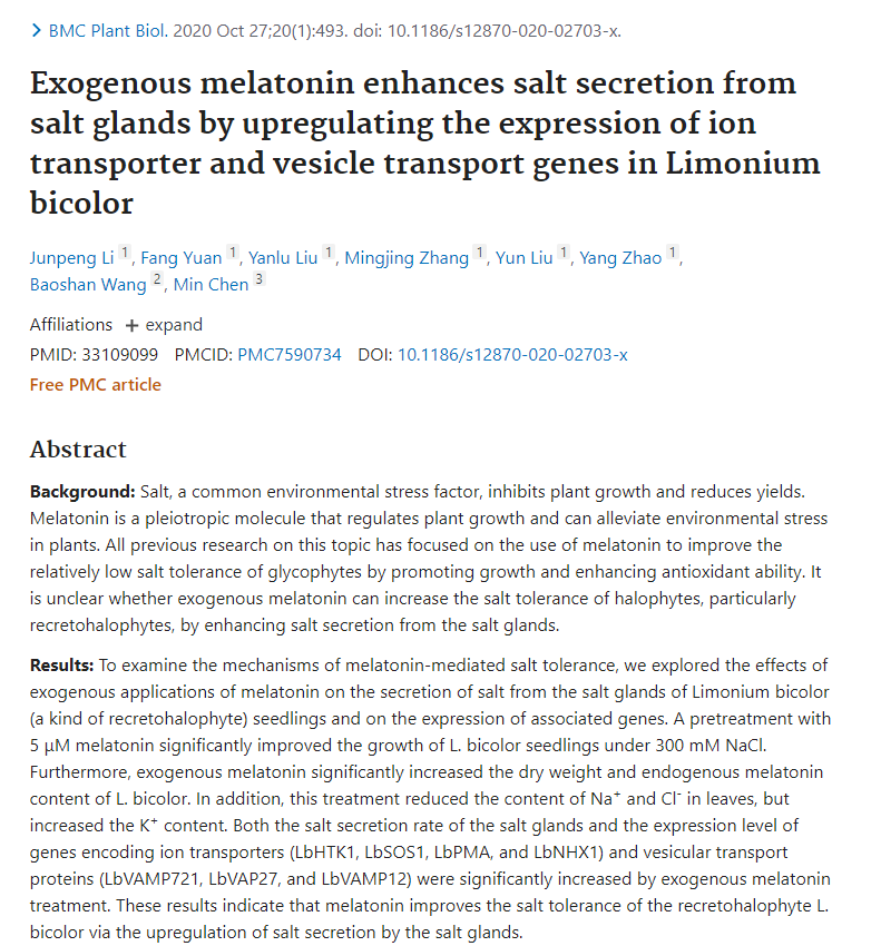 我院陈敏教授在BMC PLANT BIOLOGY期刊发表学术论文