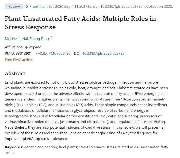 何梅 Plant Unsaturated Fatty Acids Multiple Roles in Stress Response.pdf