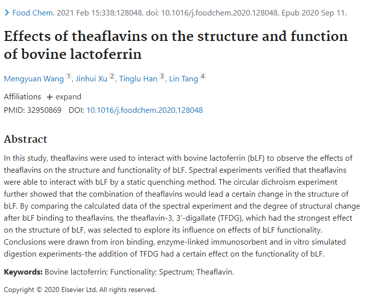 唐琳-Effects of theaflavins on the structure and function of bovine lactoferrin.pdf