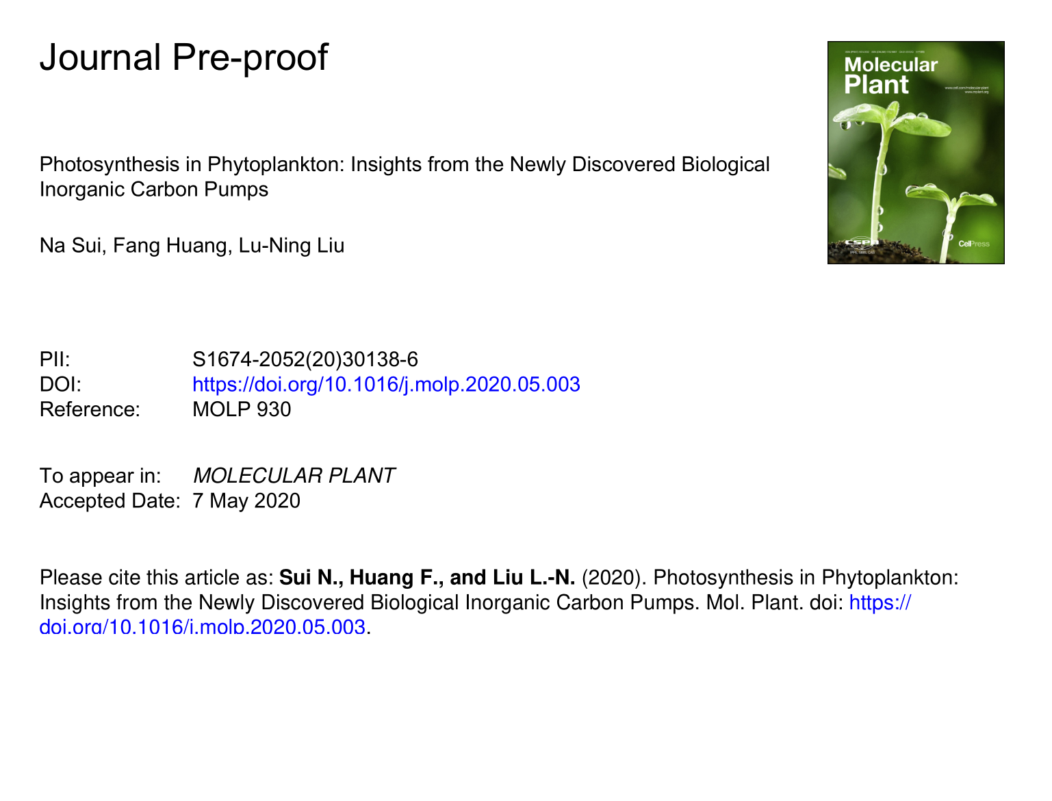 隋娜Photosynthesis in Phytoplankton Insights from the Newly Discovered Biological Inorganic Carbon Pumps..pdf