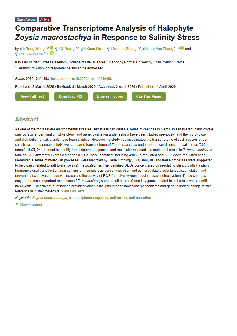 樊守金 Comparative Transcriptome Analysis of Halophyte Zoysia macrostachya in Response to Salinity Stress.pdf