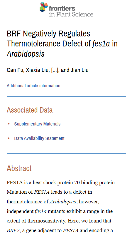 刘箭 BRF Negatively Regulates Thermotolerance Defect of fes1a in Arabidopsis..pdf