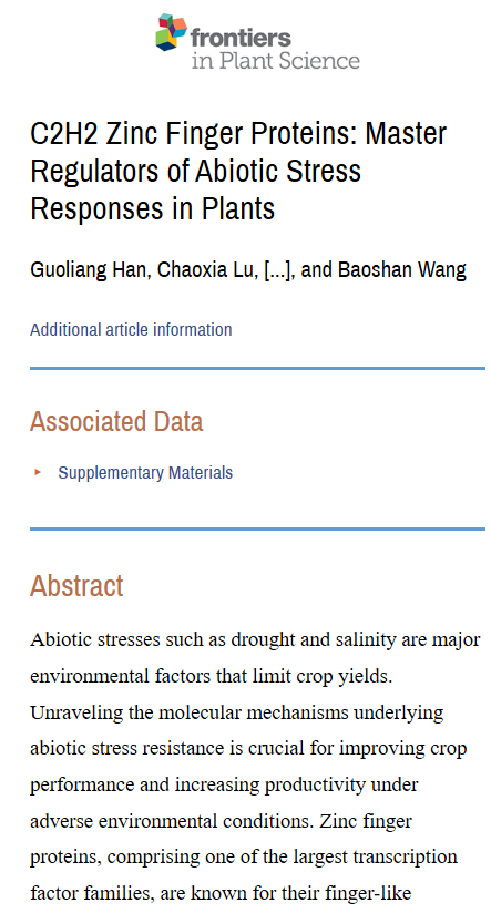 韩国良 C2H2 Zinc Finger Proteins Master Regulators of Abiotic Stress Responses in Plants..pdf