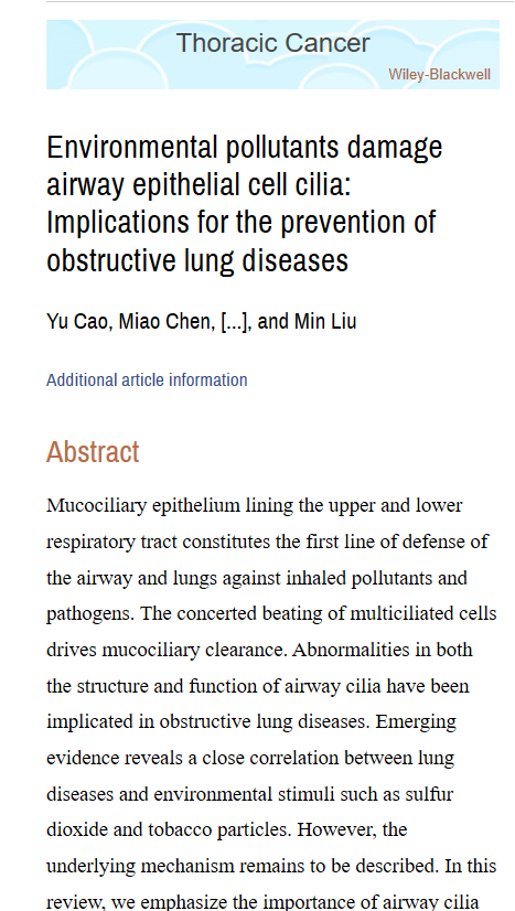 刘敏 Environmental pollutants damage airway epithelial cell cilia Implications for the prevention of obstructive lung diseases..pdf