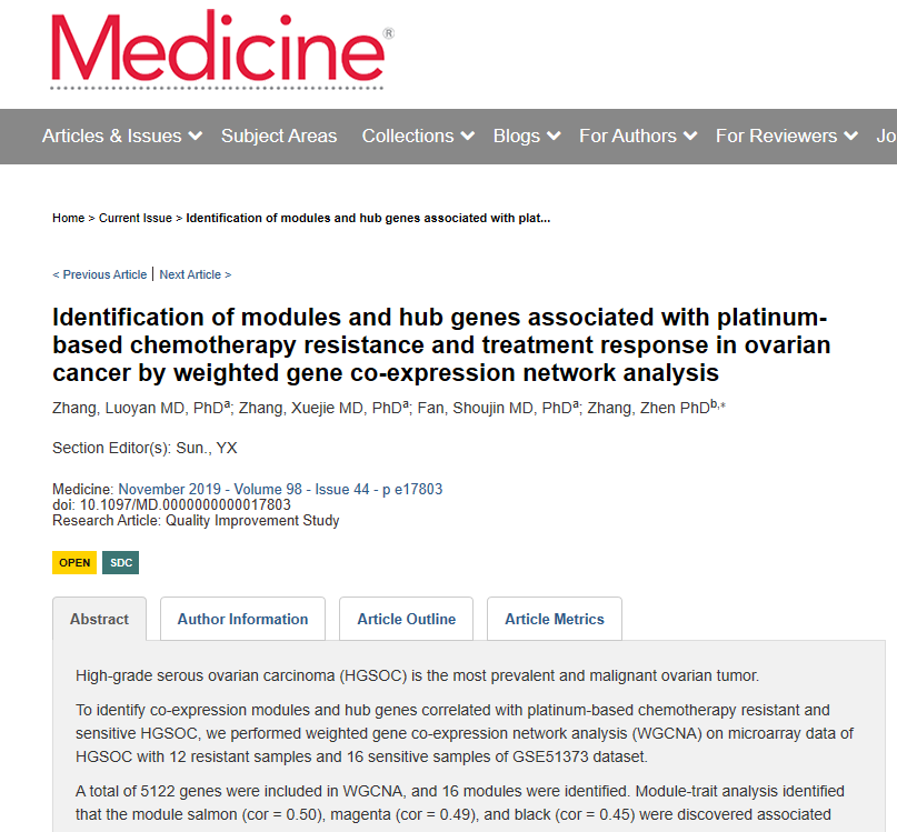 张洛艳 Identification of modules and hub genes associated with platinum-based chemotherapy resistance and treatment response in ovarian cancer by weighted gene co-expression network analysis.pdf