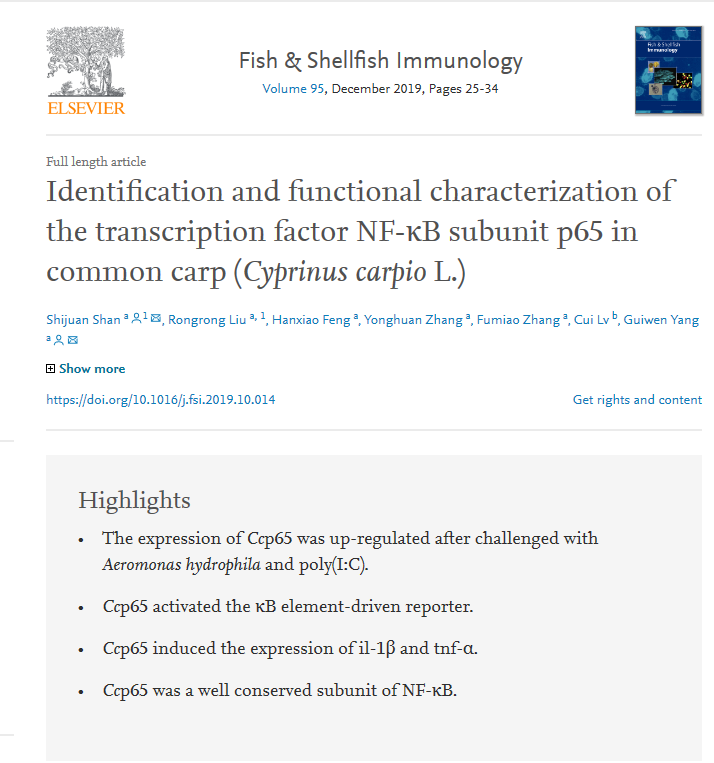 杨桂文 Identification and functional characterization of the transcription factor NF-κB subunit p65 in common carp (Cyprinus carpio L.).pdf