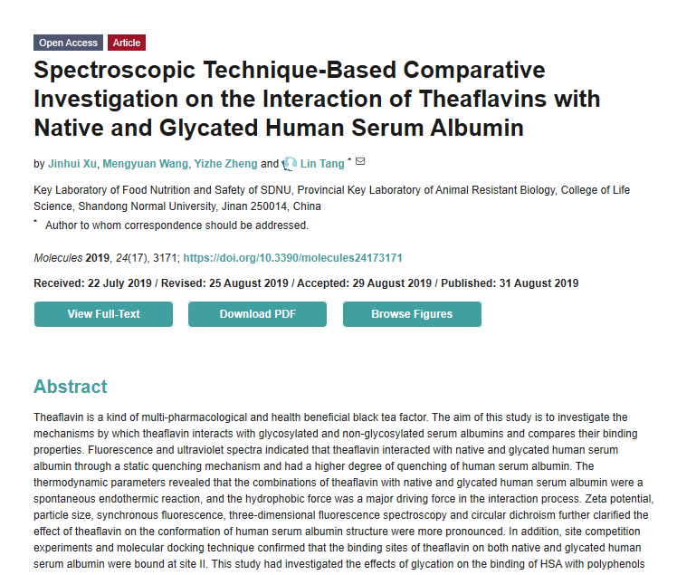 唐琳 Spectroscopic Technique-Based Comparative Investigation on the Interaction of Theaflavins with Native and Glycated Human Serum Albumin.pdf