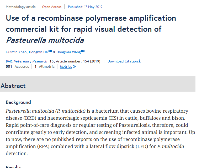 何洪斌 Use of a recombinase polymerase amplification commercial kit for rapid visual detection of Pasteurella multocida..pdf