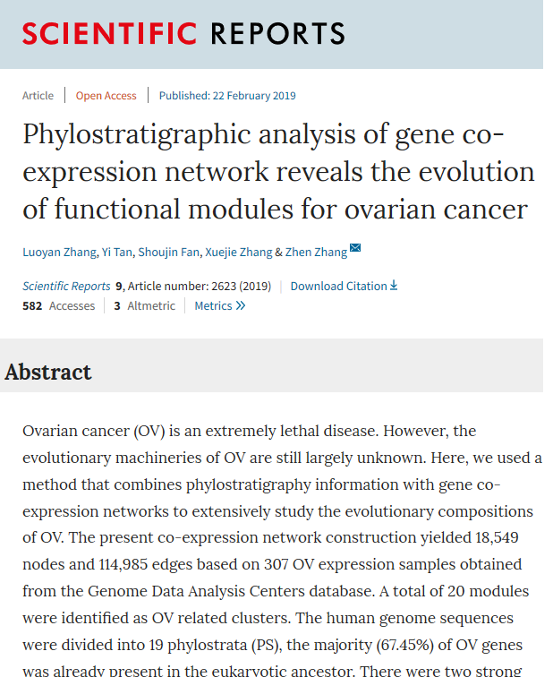 张洛艳 phylostratigraphic analysis of gene co-expression network reveals the evolution of functional modules for ovarian cancer.pdf