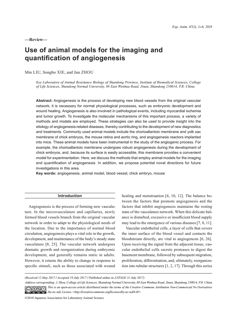 我院刘敏教授在Exp. Anim. 期刊发表学术论文