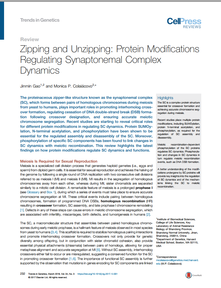 我院高金珉教授在Trends Genet. 期刊发表学术论文