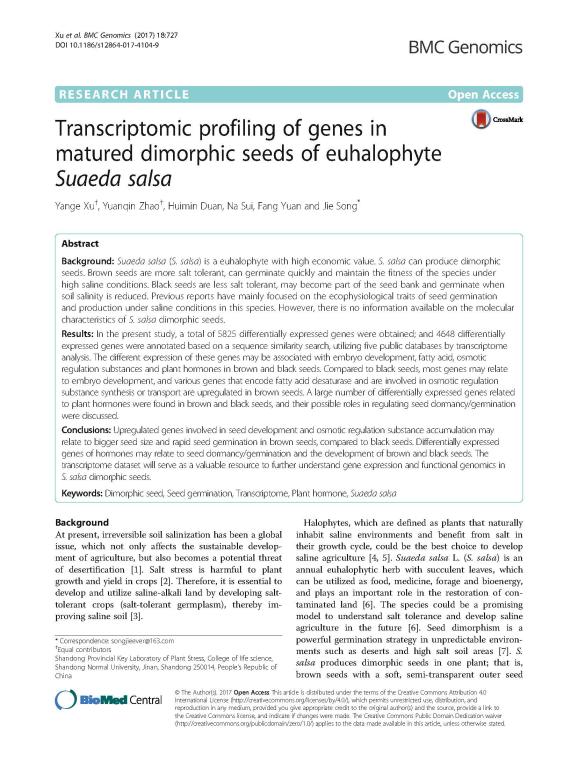 我院宋杰教授在BMC Genomics期刊发表学术论文