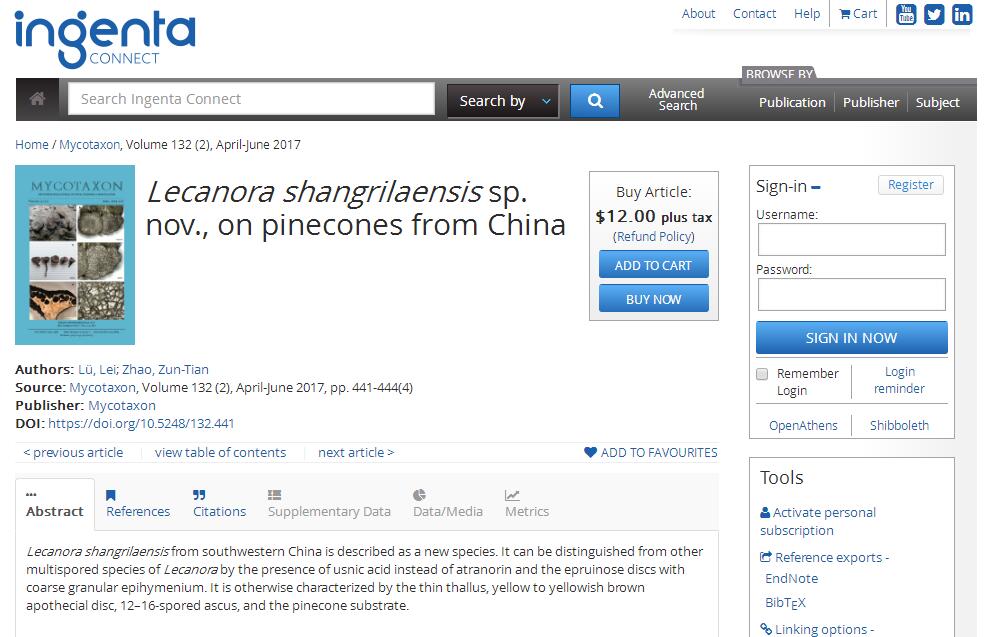 我院赵遵田教授在MYCOTAXON期刊合作发表学术论文