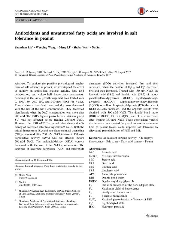 Antioxidants and unsaturated fatty acids are involved in salt tolerance in peanut.pdf