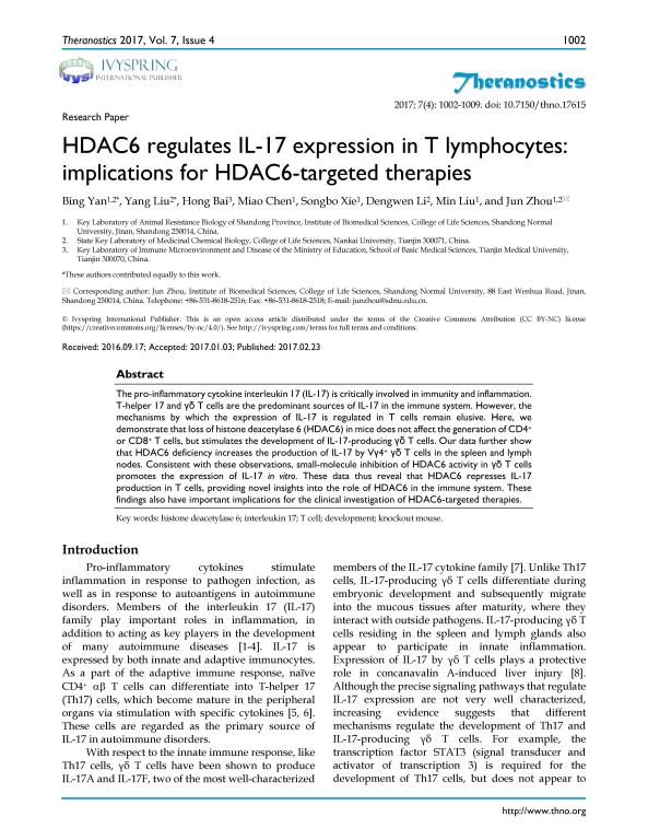 我院周军教授在THERANOSTICS杂志发表学术论文