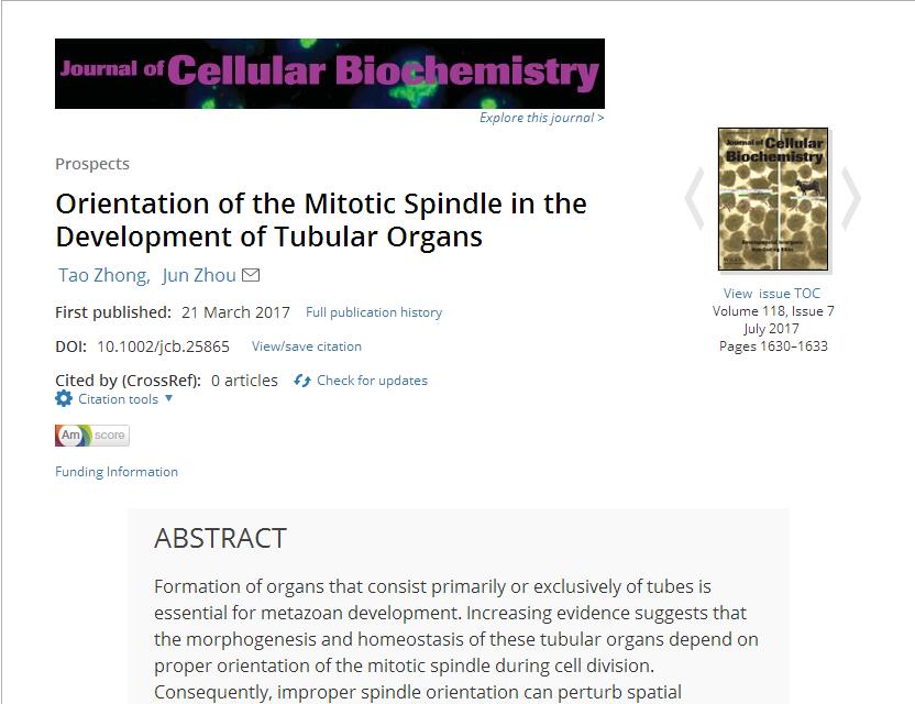 我院周军教授在Journal of Cellular Biochemistry期刊发表学术论文