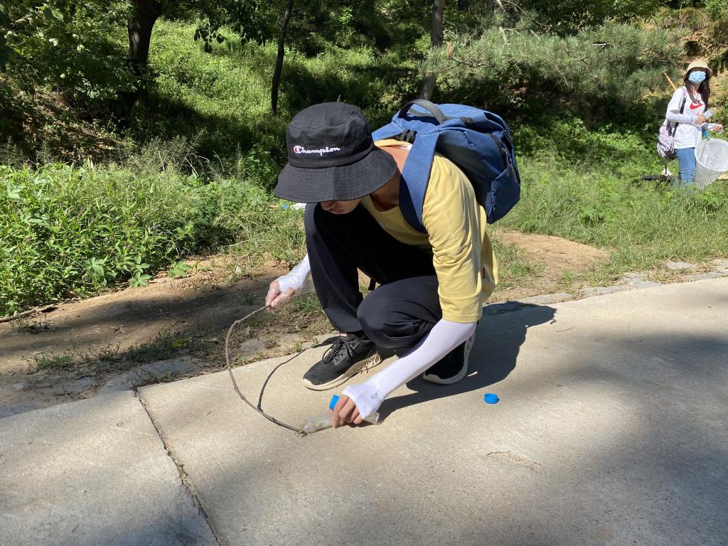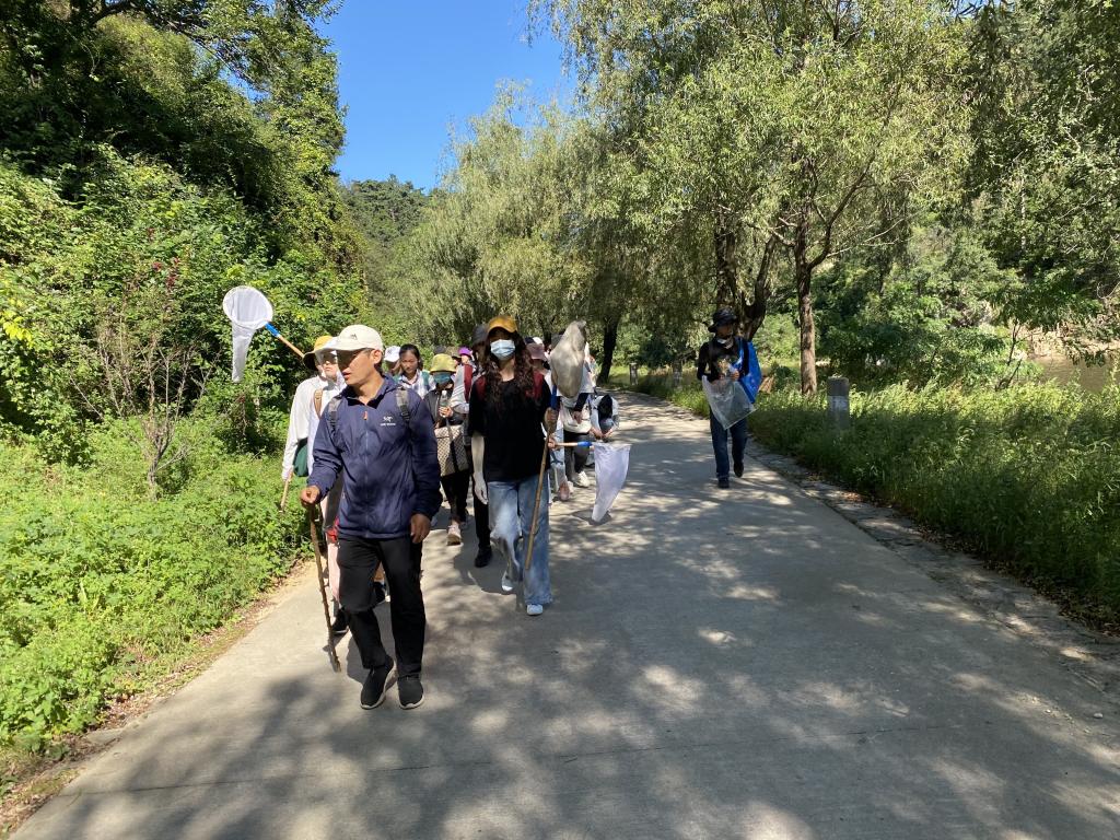 9月3日,记者跟随野生实习队伍,到山东药乡林场进行实地采访。经过近两个小时的车程到达林场后,领队先给参与的347名学生讲解注意事项,接下来开始野外实习,采集动植物标本。“这个是两型豆,看这个底下,看上去像根,其实是茎,不仅会在地上开花结果,也会在地下开花结果,有的人会误认为是野大豆。”拿到学生刚刚采集到的标本,指导老师就认真详细地讲解起来,学生们马上围过来听讲,樊守金边走边讲,信手拈来,堪称一部“移动的《植物学志》”。学生们经过了疫情之后,能有这样一次野外实习的机会,大家都十分珍惜和兴奋。一路上跨越了怪石嶙峋的石头坡,绕着烈日下的盘山公路向前进发。有的同学用力挥舞手中的捕虫网,有的同学蹲在草丛里聚精会神地捉昆虫,还有波斯菊、狭叶珍珠菜、红蓼等都被大家收入囊中。在老师们的指导下,学生们深入泥沼探寻沉水植物的奥秘;登山路上,一路认寻山路边的各种植物。烈日透过林间缝隙,稀稀疏疏地投映在大家肩头,但学生们严谨的求学态度、澎湃的求学热情、宝贵的协作精神却始终使他们保持着热情。