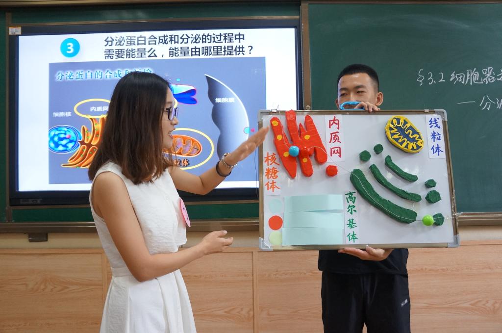 决赛分为说课、模拟授课和答辩三个环节,选手可自主选择初中生物、高中生物教材中的任一知识点进行讲解。教育实习学校推荐选手、突围赛选手、非生物科学专业优秀选手们联手奉上了一场精彩的教学技能比拼。说课阶段,选手们从教材分析、学情分析、教学目标、教学重难点、教学方法、教学过程、板书设计等方面进行了阐述,既明确了学生现有的知识储备与认知特点,又科学点明了正确的教法和学法。模拟授课时,许多选手较好地使用了碱基对贴纸等教学模型,也有选手将实验贯穿授课始终,真正做到了理论与实践的统一。“年年岁岁花相似,岁岁年年鼠不同”、“物质跨膜运输就像物体上下坡”这些创新性表达也令评委眼前一亮。在比赛中,选手们谈吐自然、条理清晰,展现出了过硬的专业素养和强大的课堂把控力。讲授法、演示法、合作探究法、观察法、分析法等教学方法的准确运用保证了课堂教学的高效进行,也展现了师范院校学生扎实的功底。选手们在讲台上一展风采,评委们认真聆听、客观评价。最终,于理杰等10人荣获特等奖,万雅馨等20人荣获一等奖,其余同学荣获二等奖。至此,英国上市365第十一届学生教学技能大赛圆满落下帷幕。学院将在赛后择期举办大赛观摩课,为后来者提供指导与帮助。