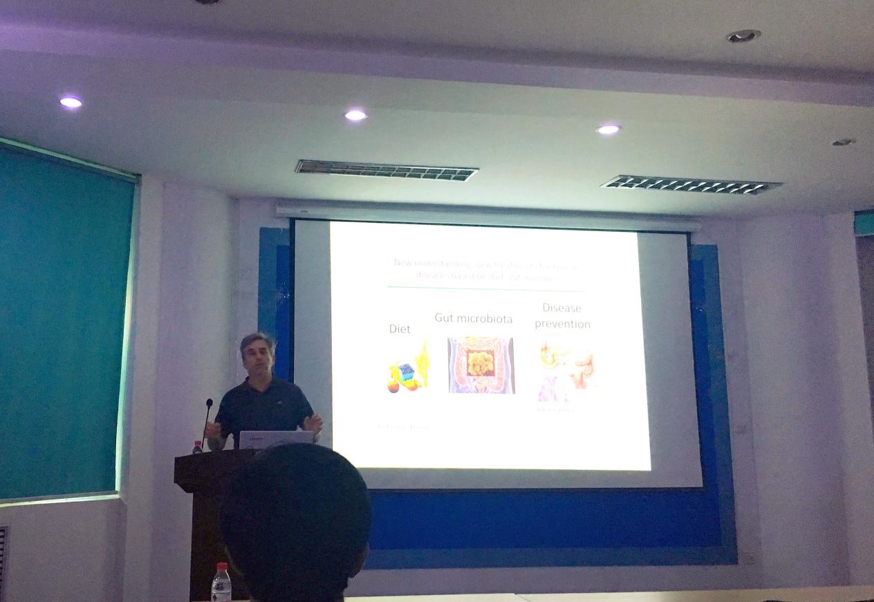 报告会上,Charles Mackey教授首先为大家科普了一些西方生活中导致疾病的物质。接下来Charles Mackey教授向大家详细介绍了饮食方式如何引发疾病的相关因子和机制,其中涉及了GPR43、SCFA、HDAC、AHR等相关因子。最后就如何抵制疾病保持健康提出了一些良好的食谱建议。