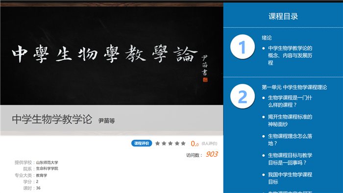我院《中学生物学教学论》慕课课程于今日正式上线