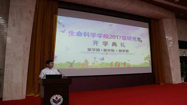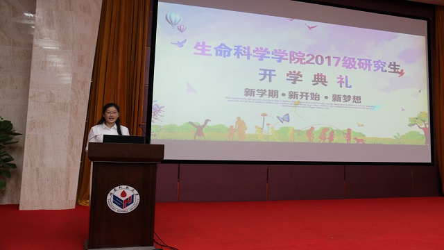 2015级硕士研究生、院研究生会主席齐鲁慧子同学代表在校研究生发言。她为新生分享了自己的求学感悟,要用心感悟淳朴的师生情、同学情,确定生活目标、坚持学习,好好利用学校的教育资源,保有对待学术和对待生活的热情,同时要注意锻炼身体,保持身心健康。她鼓励同学们努力奋斗,在生科院度过一段美好而又难忘的研究生生活。