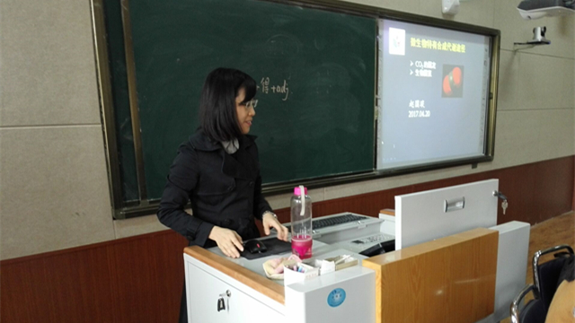 赵国琰老师主讲的《Microbiology》为我院第一批建设的双语课程,将双语课进行混合式教学难度较一般的课程更大。本节公开课以微生物特有的合成代谢途径为主要内容,以课堂讨论和主题学习内容展示为主要形式。学生们清晰流利的英文汇报,出乎了许多听课教师的意料,展示了生科院学生良好的学习综合能力和英文素养。赵国琰老师把CNS上发表的最新文章作为课堂内容的拓展介绍给学生,拓宽了学生视野与思维,拉近了课堂与科研前沿的距离。英国上市365的王增兰教授感叹道年轻老师的实力的确不一般,既能紧跟科研前沿,又能做到科研推动教学。