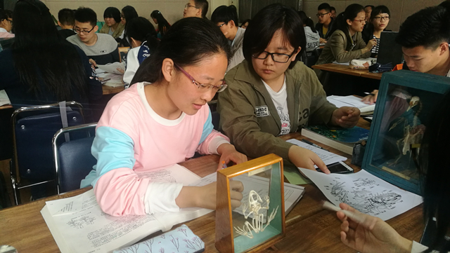 赵东芹老师主讲的《动物学2》以脊椎动物骨骼系统为主要内容,以进化和适应为主线,利用对比法学习陆生脊椎动物的骨骼系统的主要特点。精彩的课堂活动不仅充分调动了学生的能动性,同时又引导学生形成生物进化与结构功能的统一性,结构功能与环境适应的统一性的理念。尤其是一位表达不太流利的男同学的课堂汇报给所有听课老师留下了深刻的印象。经过赵老师介绍大家了解到这位同学性格内向,并且存在一定的学习障碍,但在本学期的混合式学习过程中,经过赵老师的积极引导,他越来越主动地参与到课堂讨论中,并且经常在课堂交流中发言。虽然他的表达交流不及其他同学流畅,但是相对之前已经有了很大的进步。赵东芹老师这种关注每一位学生,既传授知识又关注学生成长的为师之道赢得在在场所有老师的高度评价。