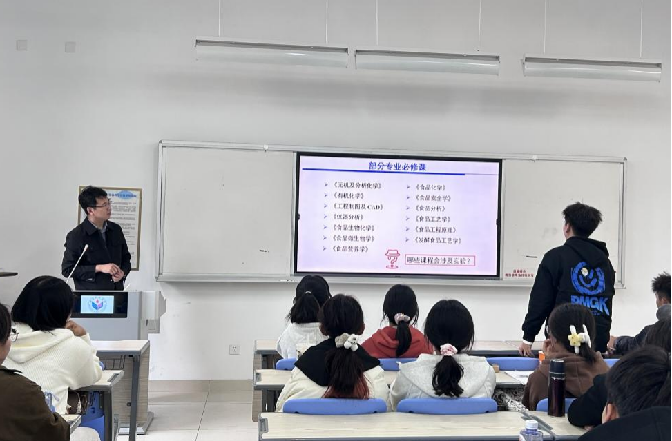 11月12日下午,张震老师讲授食品科学与工程专业《专业导论课》的“实验室安全”一节,课上张震老师积极与同学们展开互动并从身边的实例出发,切身为同学们讲解了实验室中重要的安全注意事项,并为同学们介绍了实验室设备操作及安全防护基础知识,提高了同学们的实验安全意识和对食品专业课程的大致了解。